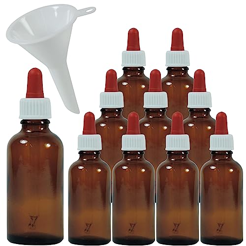 Viva-Haushaltswaren Gabriele Hesse e.K. 10 pipettflaskor/apoteksflaskor i brunt glas, 50 ml inkl. pipetter (röd-vit)