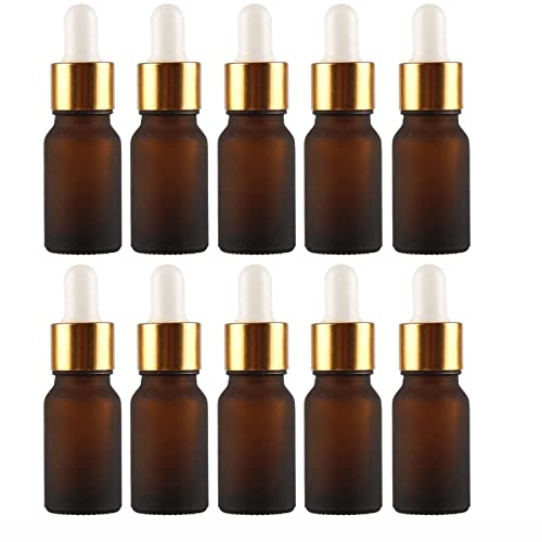 JamHooDirect 10 st, 10 ml droppflaskor i glas med pipetter, tomma pipettflaskor i mini för eteriska massageoljor/kemisk vätska (bärnstensfrostad klar/guldlock)