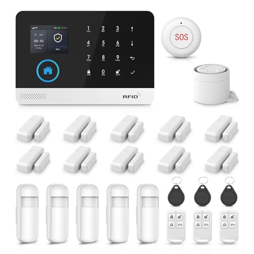 LWOHSI WiFi + GSM hemlarmsystem, larmkit med PIR-detektor, fjärrkontroller, dörr fönstersensor kompatibel med Alexa, utan månadsavgifter