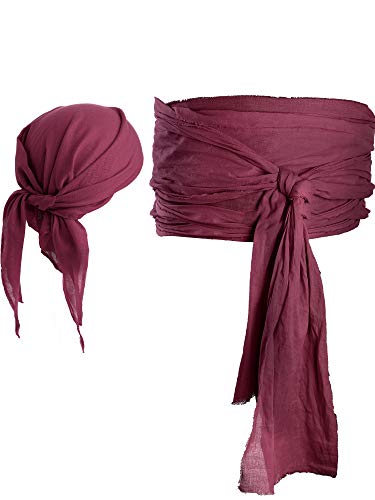 Piratdräkt män kvinnor pirat huvud halsduk hatt tillbehör pirat skärp bälte bandana midjebälte (vinröd, linne)