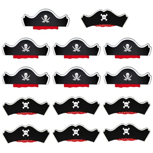 YSJCHEBS Pirathattar för barn med 14 delar, filt pirathattar, piratdräkter för barn, pirat rollspel tillbehör, teaterföreställningar, Svart, M