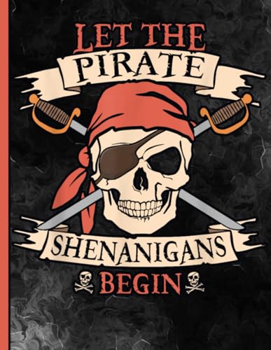 Funny Pirate Skull Notebook with Bandana and Swords, Halloween Theme Journal for Students, Teachers, School, and Costume Lovers