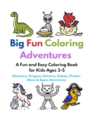 Big Fun Coloring Adventures: A Fun and Easy Coloring Book for Kids ages 3-5 with Dinosaurs, Dragons, Unicorns, Robots, Pirates, Aliens & Space Adventures