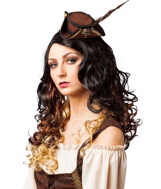 WIDMANN 09644 – Pirathatt, med hår, trespets, läderutseende, brun, pirat, tillbehör, karneval, temafest