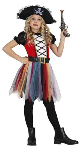 FIESTAS GUIRCA Färgglad piratflicka kostym - barnkläder med pirathatt och Tutu-klänning för flickor mellan 7–9 år