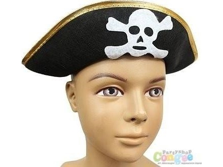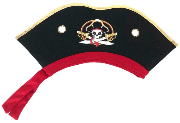 Pirathatt i svart med guldkant och dödskalle för barn - kostymtillbehör för flickor & pojkar för maskerad/karneval