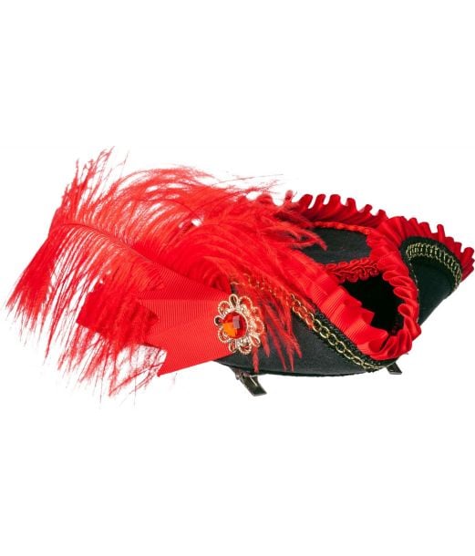 Smiffys unisex tredelad pirathatt med röda fjädrar och gyllene enbensborst, One size, svart, 99783