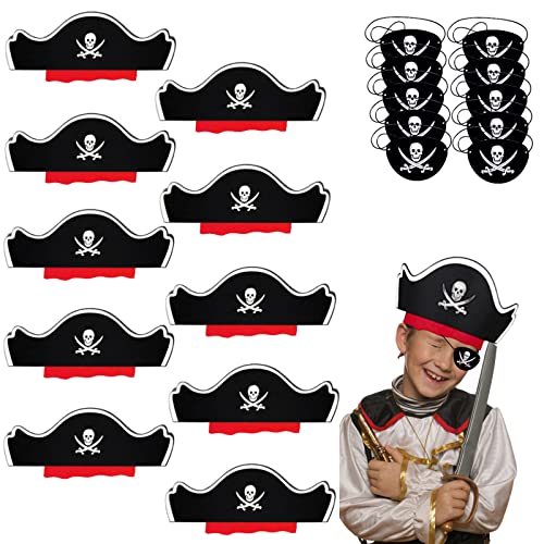 MOSNOW 10 stycken pirathatt + 10 stycken ögonlappar pirat barn, filt piratkapten hatt skalle pirattillbehör set pirathatt pirat för pirathatt barns födelsedag piratfest jul