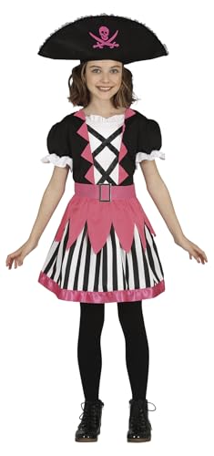 FIESTAS GUIRCA Rosa piratflicka kostym - barnkläder med pirathatt och klänning för flickor 7–9 år
