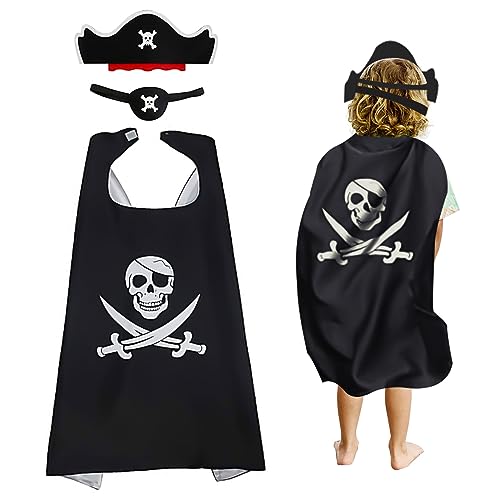 MIVAIUN 3 delar piratdräkt set barn kapten piratdräkt piratkappa för barn pirathatt ögonlapp för halloween, cosplay, karneval, masker (3 delar)