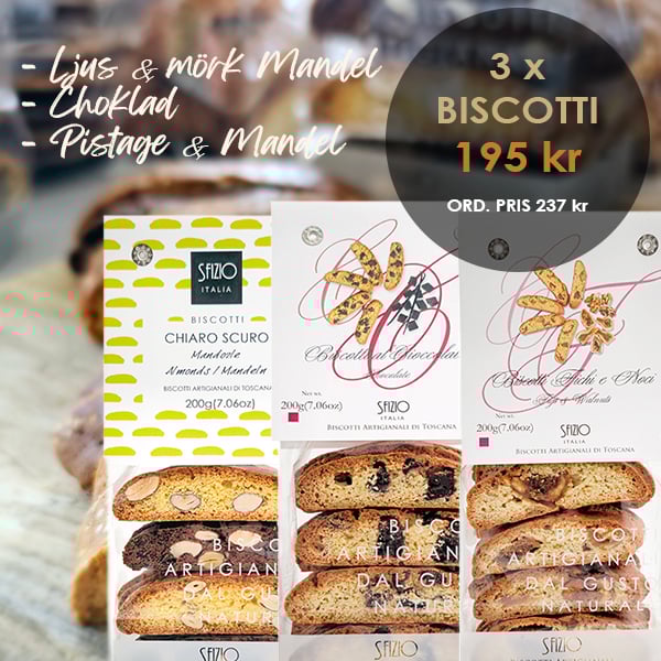 Sfizio italienska Biscotti x 3, Ljus & Mörk Mandel, Choklad, Pistage & Mandel
