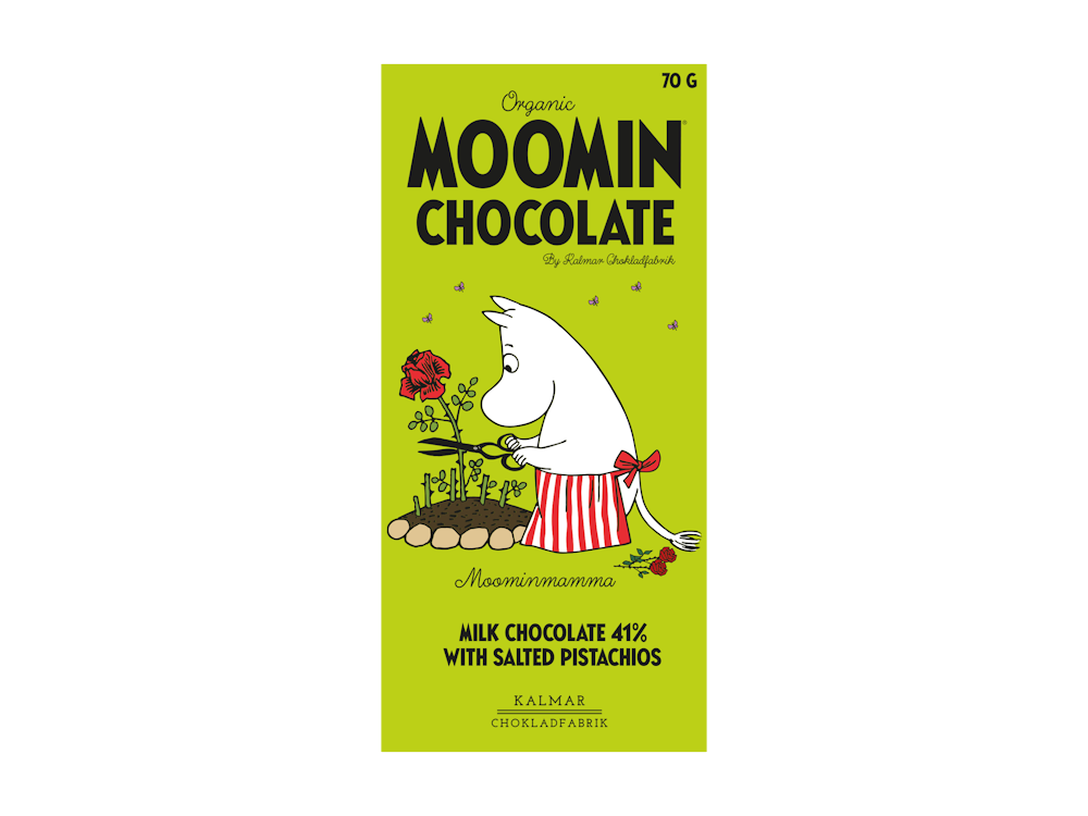 Organic Moomin Chocolate Moominmamma - Ljus choklad 41% med pistage & salt