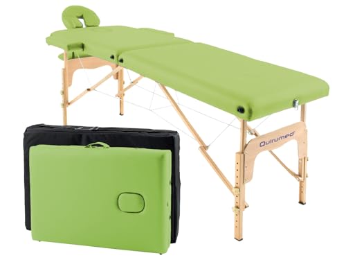 QUIRUMED Easy Wooden hopfällbart massagebord, pistagegrön färg, 182 x 60 cm, konstläder, portabelt, lätt avtagbart huvud, ansiktshål, justerbar höjd, upp till 120 kg