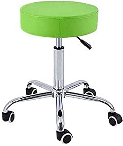 QUIRUMED ponnypall 5 hjul, krombas, pistagegrön färg, konstläderklädsel, höjdjusterbar, lätt, ergonomisk design, vridbar, upp till 150 kg