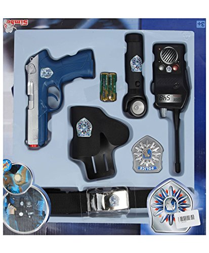 Simba 108102667 – polisränder, bältset, pistolhölster, radio, polismärke, ficklampa, rollspel, från 3 år