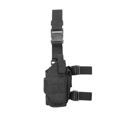 ZONSUSE Tactical Drop Leg-hölster, lårhölster med magasinsväska, Militärpistolhölster utomhus, justerbart pistolhölster för jaktskytte, militära spel, träning eller cosplay (Svart B)