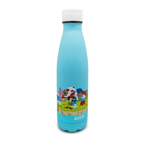 NERTHUS Botella Térmica Aldea PITUFOS – 500 ml, Doble Pared de Acero Inoxidable