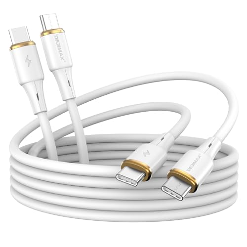 DEJIMAX USB C till USB C-laddarkabel, 60W snabbladdning USB C-kabel 2M, Silikon PD 5A Typ C telefonladdarkabel för iPhone 15, iPad Pro, Samsung S23, Google Pixel, MacBook Pro, Switch, White 2Pack