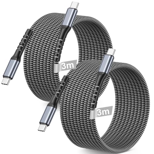 2 Pack USB C laddningskabel 3m, PD 60W lång USB C laddningskabel Nylon USBC till USBC kabel typ C laddarkabel kompatibel med iPhone 17/16/15,MacBook Pro,iPad Pro,Galaxy S25/S24/S23S22,Pixel 9/8/7/6 XL