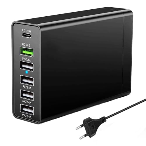 USB Laddare Multipel, 65 W 6-Portars USBA Laddningsstation, USB Nätadapter Hubb Snabbladdare Kompatibel med iPhone 16/15/14/13/12, Samsung S25/S24/S23/S22, Google Pixel