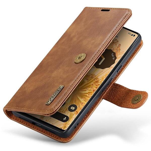 DG.MING Pixel 7 Pro Plånboksfodral Detachable 2in1 Äkta läder Brun