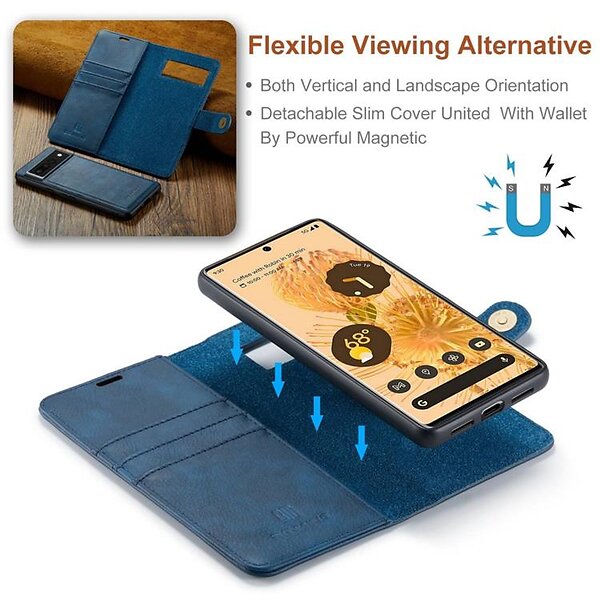 DG.MING Pixel 7 Pro Plånboksfodral Detachable 2in1 Äkta läder Blå