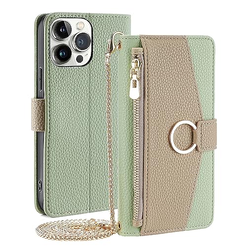 CasurvivePro Plånboksfodral för Google Pixel 7a 5G med axelremsrem, magnetisk handväska blixtlåsficka fodral PU-läder flip stöttåligt fodral med ställ för Google Pixel 7a 5G grön