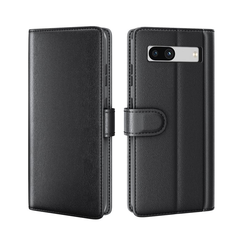 Google Pixel 7a Plånboksfodral i Äkta Läder, Svart