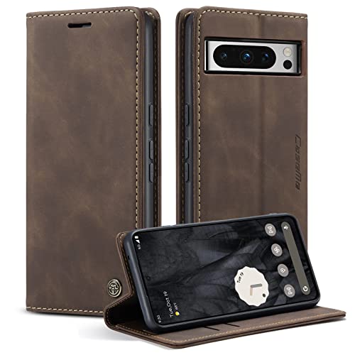 Phernykas Skal för Pixel 8 Pro Case, Läderfodral Plånbok Skal, [TPU-skal] [Kortplatser] [Kickstand] stöttåligt folio flipfodral Wallet Leather Cover för Google Pixel 8 Pro, Brun