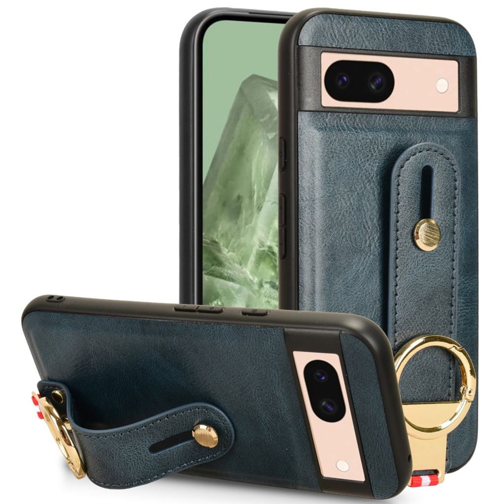 Google Pixel 8a Fodral Anti-repor – PU-läder + TPU + Armband – Blå