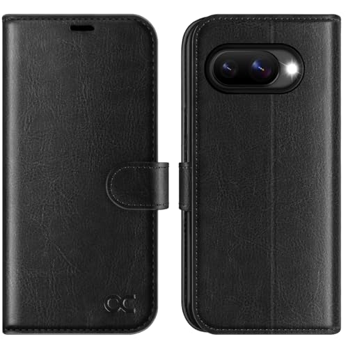 OCASE för Google Pixel 9A fodral, premium PU-läder plånbok telefonfodral med [korthållare] [RFID-blockering] [stötsäker TPU] magnetiskt skyddande flipfodral för Pixel 9A, svart