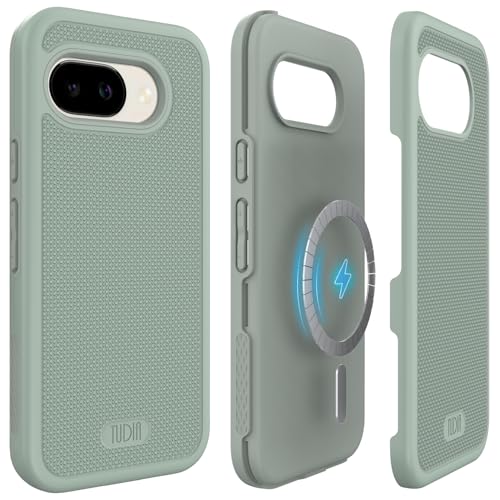 TUDIA MergeGrip [Militärgrad] designat för Google Pixel 9a fodral 2025, [Magsafe kompatibel] dubbla lager stötsäkert halkfritt slitstarkt skyddande telefonfodral (grön lilja)