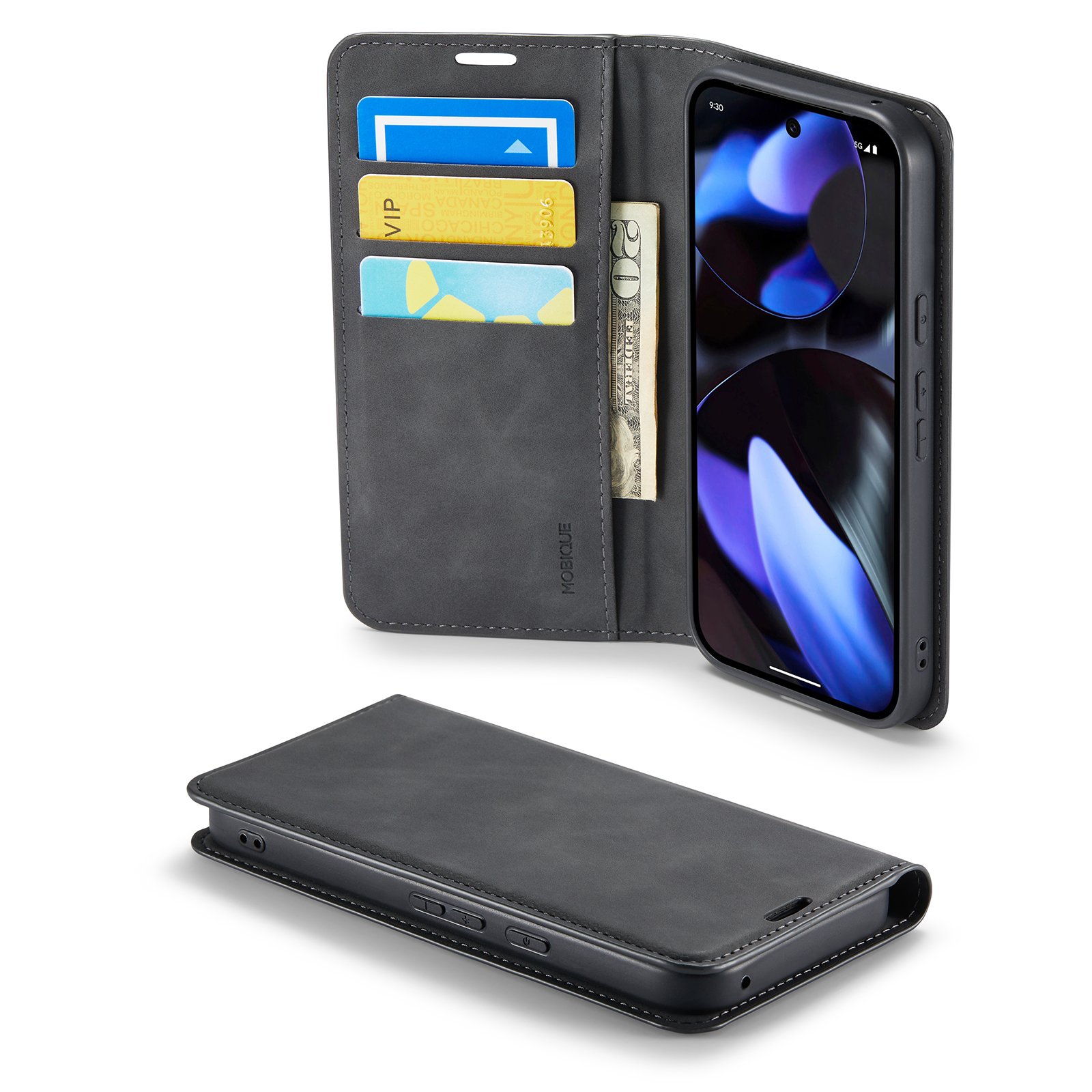 Mobique Google Pixel 9a Plånboksfodral i Äkta Läder, Svart