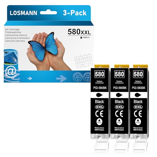 LOSMANN 3X svarta bläckpatroner kompatibla med Canon PGI-580 XXL, PGBK för Pixma TS6350 TS6150 TS8150 TS8250 TS6250 TS705 TS705a TS8151 TS6151 TS8152 TS8300 TS9150TS9155 TS9550 TR7550 TR8550