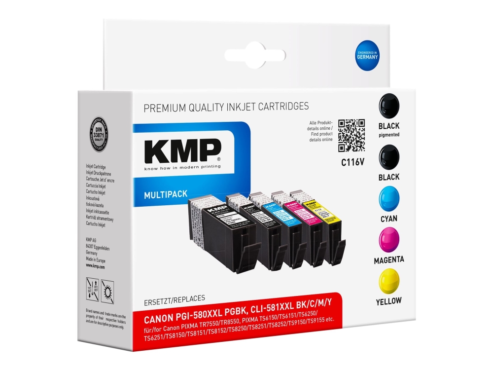 Kmp Multipack C116v - 5-Pack - Xxl-Storlek - Svart, Gul, Cyan, Magenta - Kompatibel - Bläckpatron (Alternativ För: Canon Cli-581Bkxxl, Canon Cli-581Cxxl, Canon Cli-581Mxxl, Canon Cli-581Yxxl, Canon Pgi-580Pgbkxxl) - För Canon Pixma Ts6251, Ts6350, T