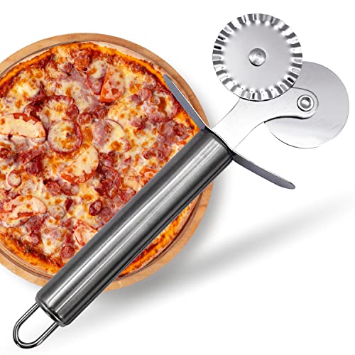 D'Emilia – Kort pasta och pizza dubbel hjul professionell rostfritt stål för köksbruk, 4 cm diameter skärpat dubbelhjul, Multipurpose Cutter Hållbar och enkel rengöring