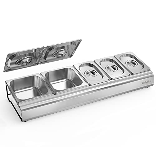 Onlyfire Station för Toppning av Pizza, Behållare i Rostfritt Stål med Lock, 5-Facks Brickor för Beredning av Ingredienser och Toppings