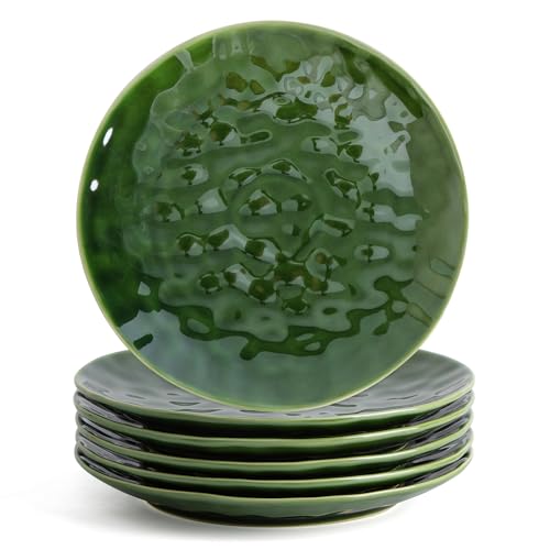 vicrays Keramiska middagstallrikar, set, 25 cm, set med 6, rund, mikrovågsugn, ugn, diskmaskinssäker, repbeständig, porslin räfflad lämplig för biff, pasta, pizza, hem, fest, grön