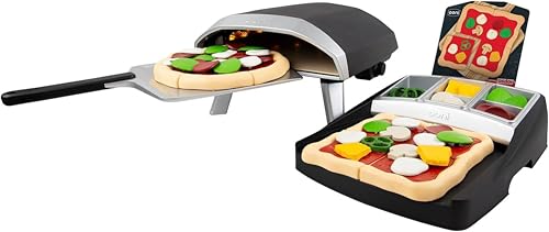 Casdon Ooni Pizza Oven & Topping Station Deluxe-set | Leksakspizza ugn & topp-set för barn ålda 3+ | Funktioner Real Flame Effect Light!