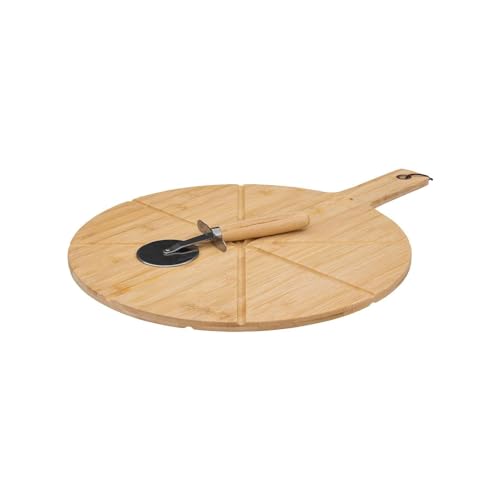 Pizza skärbräda med rulle - Pizza skärbräda med hjul för skärning, av bambu, 50 x 37,5 x 1 cm, brun
