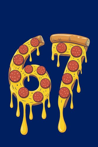 67: Cute Pizza slice style notebook for the lovers of those two numbers. Cute stocking filler gift for kids.