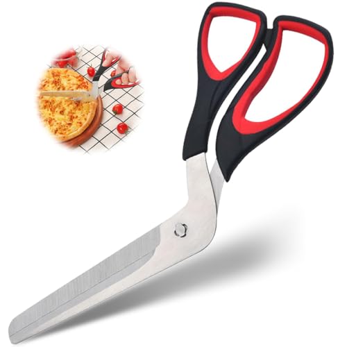 Asdirne Pizzasax, pizzaskärare med skarpt blad av livsmedelskvalitet och mjukt grepphandtag, multifunktionell kökssax, 27 cm, svart/röd