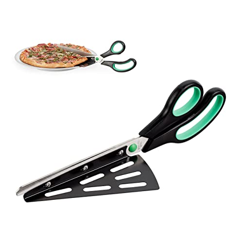 TOPANBIETER 999 Pizzasax med lyftfunktion – 2-i-1 pizzaskärare och serveringshjälp | blad av rostfritt stål och mjukt handtag | pizzakaksax | diskmaskinssäker och demonterbar
