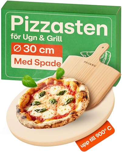 Pizzasten för Ugn med Pizzaspade i trä - Rund sten 30 cm för gasolgrill och ugn - För en krispig botten - Sten av cordierit upp till 900 °C - Behåller värmen