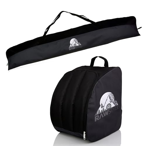 Rawstyle Skidväska set med pjäxväska, skidväska, 160 cm eller 180 cm, vattentät, skidväska, skidskydd, vintersport, kombi (svart, set 180 cm)