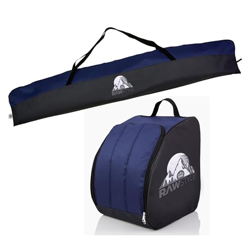 Rawstyle Skidväska set med pjäxväska, skidväska, 160 cm eller 180 cm, vattentät, skidväska, skidskydd, vintersport, kombi (svart-blå, set 160 cm)