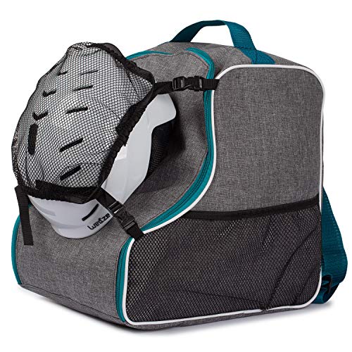 Ferocity Premium pjäxväska hjälmväska skidstövelväska med avtagbar nätficka [054], Len turkos med nät, 41 x 29 x 35 cm