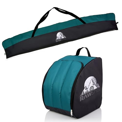 Rawstyle Skidväska set med pjäxväska, skidväska, 160 cm eller 180 cm, vattentät skidväska, skidskydd, vintersport, kombi (svart-turkos, set 180 cm)