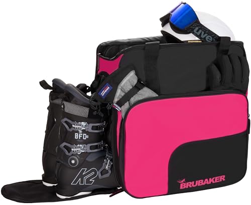 BRUBAKER Pjäxväska superfunktion – hjälmväska skidskoryggsäck för skidstövlar, skidhjälm, handskar och kläder – skidskoväska med hjälmfack – svart rosa