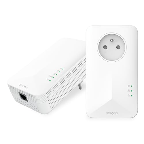 Strong CPL AV1000 Mbps, inbyggd kontakt, Powerline HomePlug AV2-box, Gigabit Ethernet-port, plug and play, kompatibel med alla lådor, energisparläge, säkerhet med en knapptryckning, 2-pack (PL1000S)